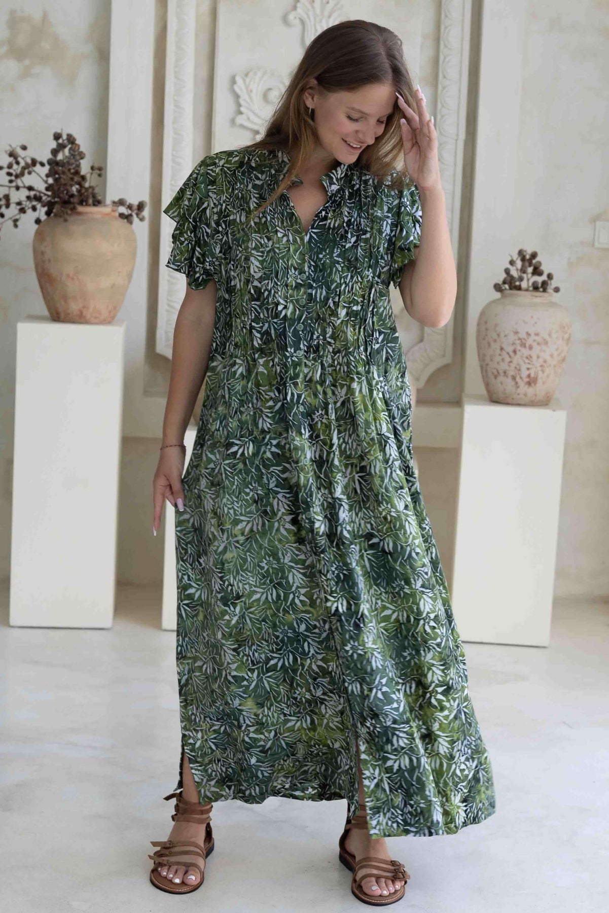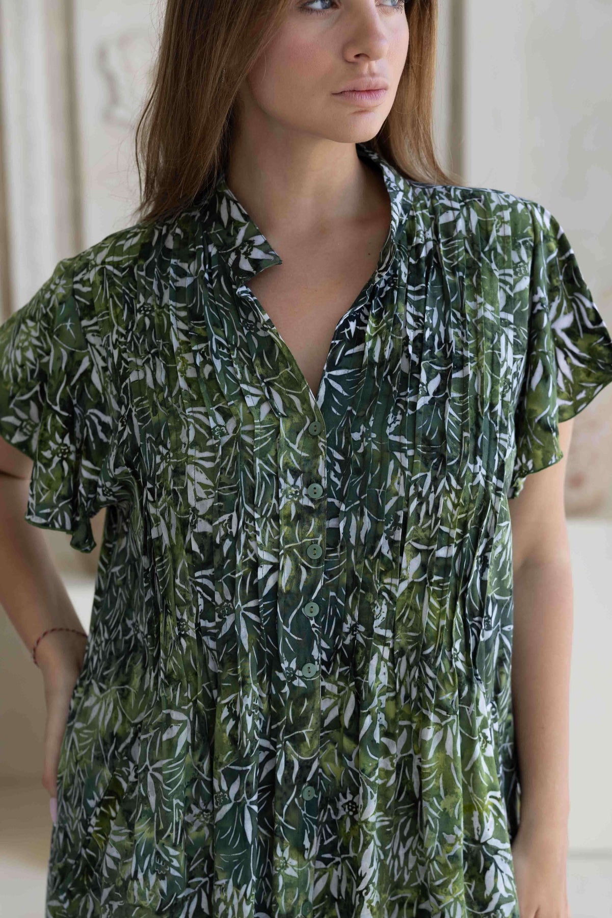 The leafy green batik print brings a fresh, earthy tone to your wardrobe- ideal for sunny days, long lunches, and everything in between.