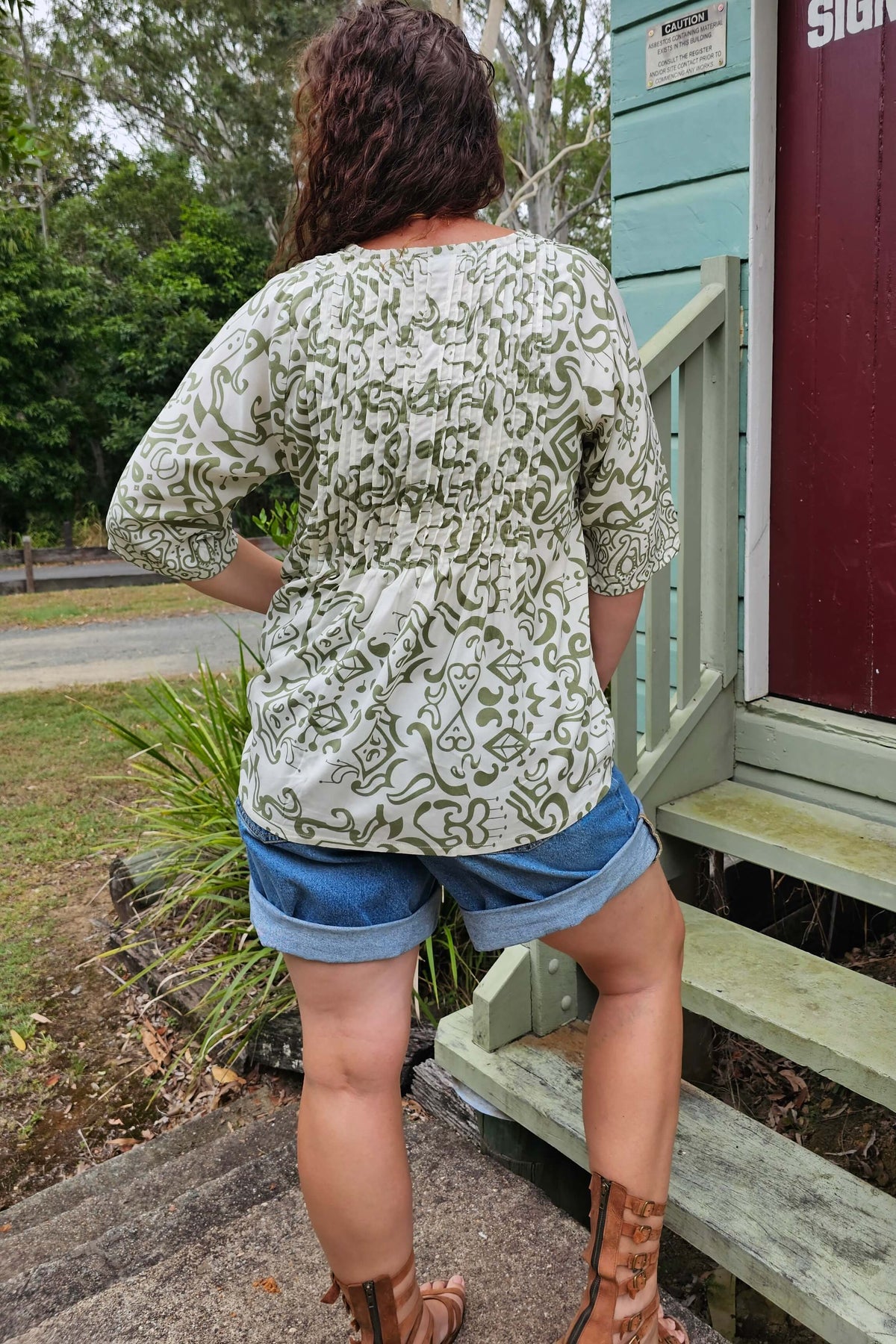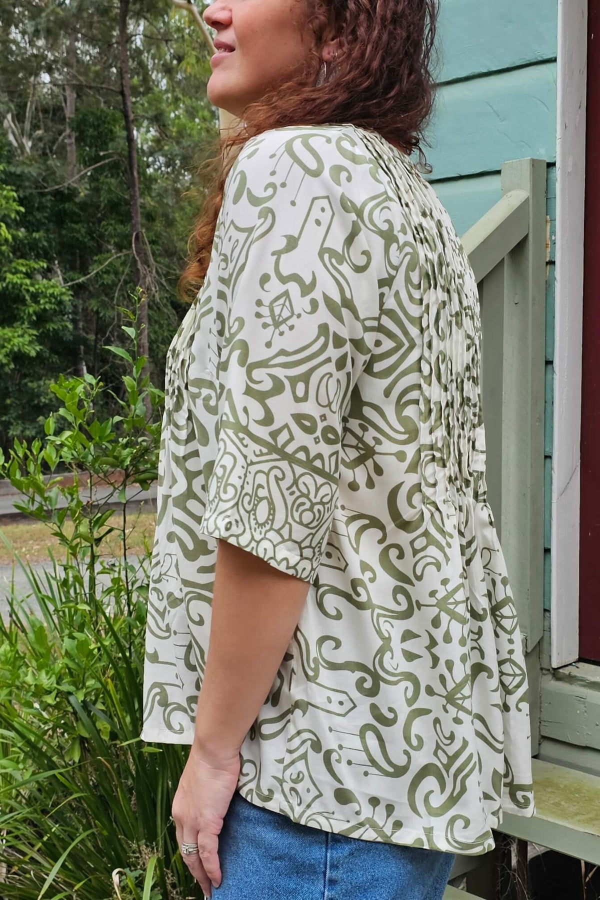 The khaki swirl print does all the work for you- interesting, flattering and easy to pair back with denim, linen or your favourite relaxed pants.